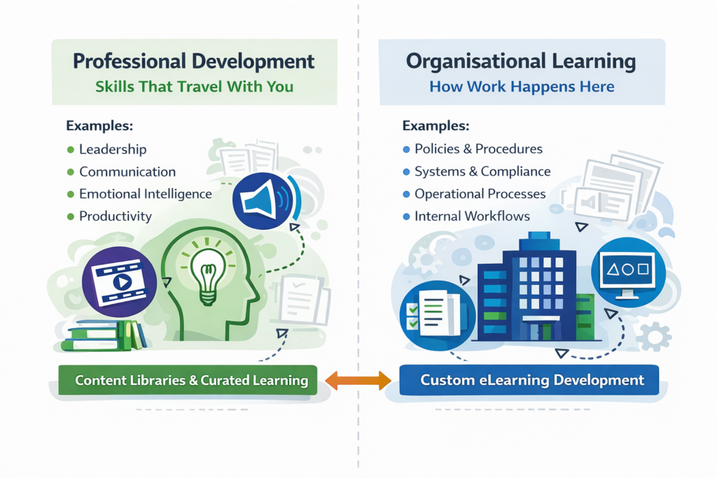 Understanding this distinction helps explain why organisations continue developing learning content, even in a world where thousands of courses already exist.